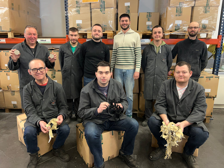 Chaque semaine des travailleurs en situation de handicaps s'intègrent à notre équipe pour réaliser différentes taches au sein de l'atelier. Broyage de la matière première et conditionnement en priorité.